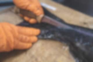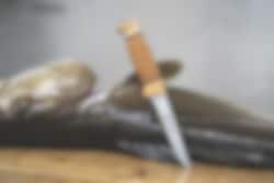 Brusletto Fiskern är en mycket bra fiskkniv med ett flexibelt skaft. Skaftet är gjort av kork och norsk björk med gummiinlägg mellan skikten, något som ger kniven ett bra grepp även om den blir våt. Kniven är gjord i rostfritt knivstål Sandvik och bladets konslipade och tunna utförande gör att kniven också kan användas för att filea fisk.