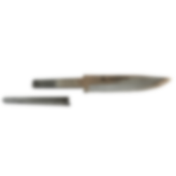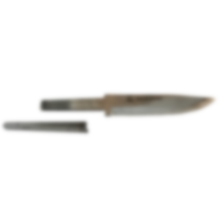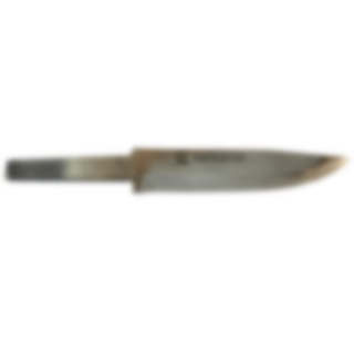 Knivbladet har en speciellt lång angel (den delen som går in i skaftet), men den kan enkelt kapas av med en fil eller vinkelslip. Knivbladet är tillverkat i kolstål och är rakslipat. Tjockleken på knivbladet är 2,2 mm.