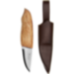 Knivbladet passar till all sorts användning. Skaftet är gjort av masurbjörk och kniven levereras med en slida i brunt oxläder med säkerhetsinlägg. Rognaldkniven är handgjord och har satts samman på vår fabrik i Geilo.