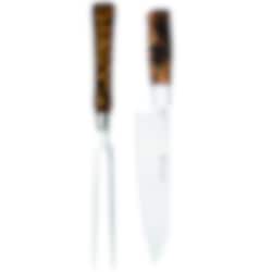 Hunter Premium Chef trancherset består av följande delar: en kockkniv på 19 cm och en tranchergaffel. Setet är designat, utvecklat och handgjort på vår fabrik i Norge. Stekgaffeln har samma material i skaftet som våra kockknivar i samma serie. Den är smidd i rostfritt stål med ett handtag av specialbehandlad masurbjörk. Stekgaffeln är perfekt för tranchering av stekt kött samt för att vända och flytta kött under stekning.