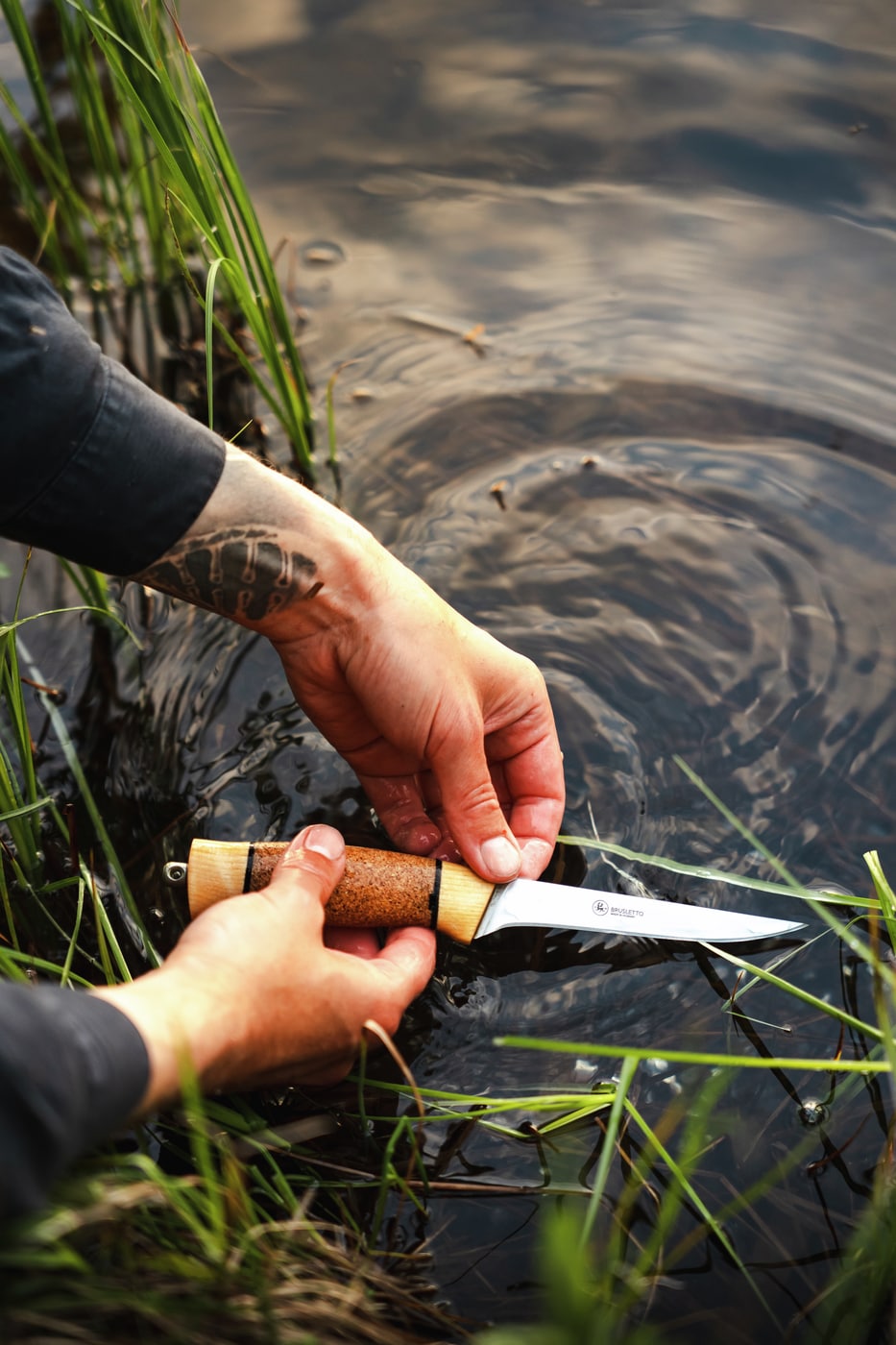 Brusletto Fiskern är en mycket bra fiskkniv med ett flexibelt skaft. Skaftet är gjort av kork och norsk björk med gummiinlägg mellan skikten, något som ger kniven ett bra grepp även om den blir våt. Kniven är gjord i rostfritt knivstål Sandvik och bladets konslipade och tunna utförande gör att kniven också kan användas för att filea fisk.