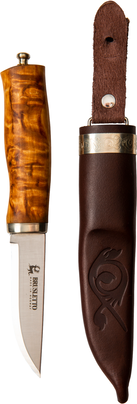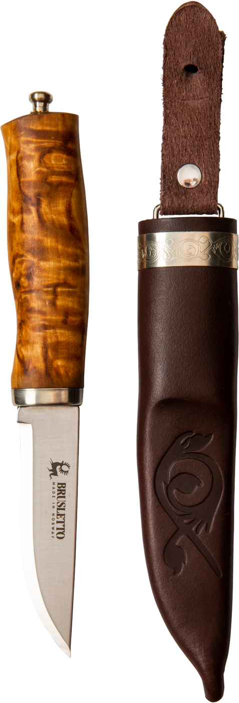 En klassisk tullkniv som kan användas till det mesta. Knivbladet har ett rakkantigt egg. Hölster och knapp i sterlingsilver. Graverat nysilverband på toppen av slidan. 14116N stål i knivbladet som är slitstarkt och lätt att slipa. Oljad björk i skaftet. Kniven levereras med slida.