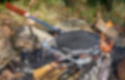 En stabil ställning för matlagning eller kaffekokning över öppen eld. Eldtällningen placeras direkt över elden. För snö eller is kan ställningen kombineras med vårt eldgaller. Fungerar perfekt med både våra kaffepannor och hällar. Smidig, stabil och vikbar konstruktion. Höjd 18 cm.