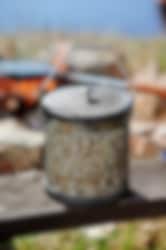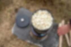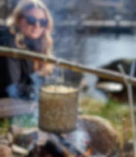 Popcorngryta är ett festligt sätt att göra popcorn över öppen eld och en given stämningshöjare för så väl barn som vuxna. Den tjockare stålbottnen fördelar värmen fint, en rejäl klick smör eller skvätt olja på botten så är det bara att poppa som vanligt. Fungerar givetvis även över grillen eller gasolbrännaren – bara inte lika kul. Höjd 17 cm, diameter 16 cm.