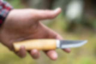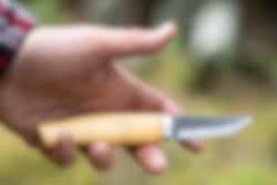 och mer än 150 000 studenter har under kurser och aktiviteter testat denna kniv där skaftet är gjort för att passa både vuxna och barn. 440C i knivbladet som är hållbart och lätt att slipa upp igen. Oljad björk i skaftet.