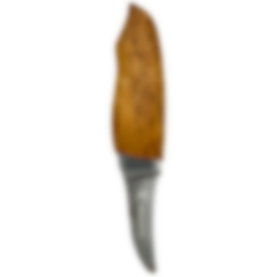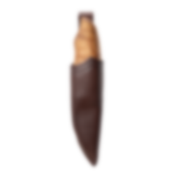 Knivbladet har en längd på 7,5 cm. Kniven är en smidig liten buköppnare avsedd för både storviltjägare och småviltjägare. Eggen är slipad längs knivens rygg med en trubbig spets, så att du kan ta ur ett djur utan att punktera inälvorna. Eftersom kniven har ett kort blad kan den också användas för att öppna buken på fisken. Fisken öppnas med ett snabbt tvärsnitt, varefter kniven förs genom buken med en lång, jämn rörelse hela vägen ner till analöppningen. Materialet i handtaget ger ett mycket bra grepp även när det blir vått av vatten, fiskslem eller andra ämnen. Knivbladet är gjort av rostfritt stål och slidan är gjord av koskinn.