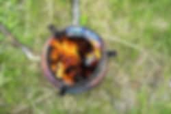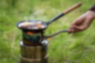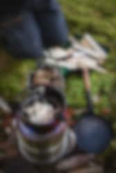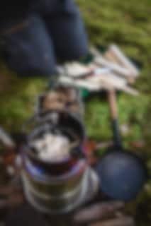 Smart och smidigt vedkök som eldas med pinnar eller mindre ved. Med några trästickor, näver och mindre pinnar ger konstruktionen ifrån sig en effektiv värme. Inga behov av sprit eller gas och något brännbart finns i princip överallt i vårt land. Funkar perfekt på utflykten men också som ett reservkök om något oförutsett skulle inträffa. Köket svalnar snabbt och kan kvickt packas ner skyddspåsen efter användning. Vikt 1,1 kg.