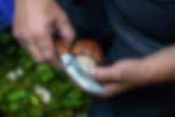 Brusletto Falken är en mycket bra jaktkniv. Kniven har ett hålslipat och uppåtböjt knivblad (trailing-point) anpassat till jakt, men som också kan användas för annat. Knivbladet har en längd på 8,7 cm. Kniven har holk i massivt gjuten aluminium, färgad slida i oxläder med säkerhetsinlägg och kan lätt slipas upp igen om den blivit slö. Bladet är gjort av rostfritt knivstål och skaftet av oljad masurbjörk. Kniven levereras i presentkartong.