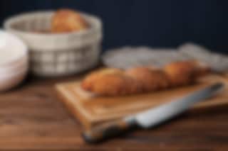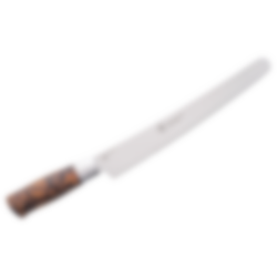 Hunter Premium brödkniv är en modern kniv med ett 26 cm långt blad. Den är lika lämplig som konditorkniv som en brödkniv. Kniven har en svag båge på bladet, vilket gör den perfekt för större bröd och när du ska dela tårtbottnar i två delar. Den är utvecklad i Geilo och vi har använt samma typ av stål i denna kniv som vi använder i våra friluftsknivar och köksknivar med trähandtag. Det gör att knivens egg förblir vass under lång tid. Handtaget som används på knivarna är detsamma som används i resten av Hunter-serien. Vi har fått många positiva feedback om vårt handtag och det fungerar utmärkt som en kökskniv. Samtidigt är det en vacker kniv som kommer att pryda knivlistan i ditt kök. Vi rekommenderar att du tvättar kniven för hand, eftersom trähandtaget inte tål maskindisk, och kniven förblir vass längre vid handtvätt.