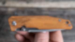 Klingen är i borstat rostfritt stål av typen 9Cr18MoV, gångjärn med keramiska kullager. Detta är ett stål med en måttlig kolhalt, som är väl lämpad för allmännyttiga knivar. Kniven har ett elegant och stilrent uttryck, med sidoplattor i oljat olivträ.