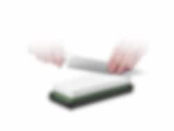 Med en keramisk slipsten underhåller du lätt dina knivarna och håller dem vassa. Grön sida har grovhet # 240 som slipar och reparerar eggen och bladet. Vit sida har grovhet # 1000 som polerar och jämnar ut finslipar bladet.